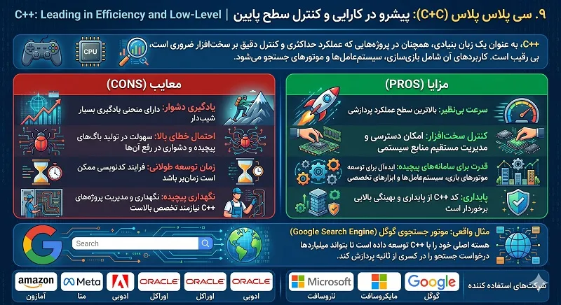 موتور جستجوی گوگل (Google Search Engine) هسته اصلی خود را با C++ توسعه داده است تا بتواند میلیاردها درخواست جستجو را در کسری از ثانیه پردازش کند.
